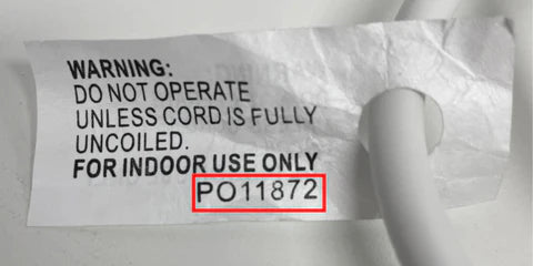 2. If you have a 3-metre Jackson extension lead, there should be a safety warning tag around your product. The batch number is included on this label. The ONLY batch affected by the recall is PO11872.
