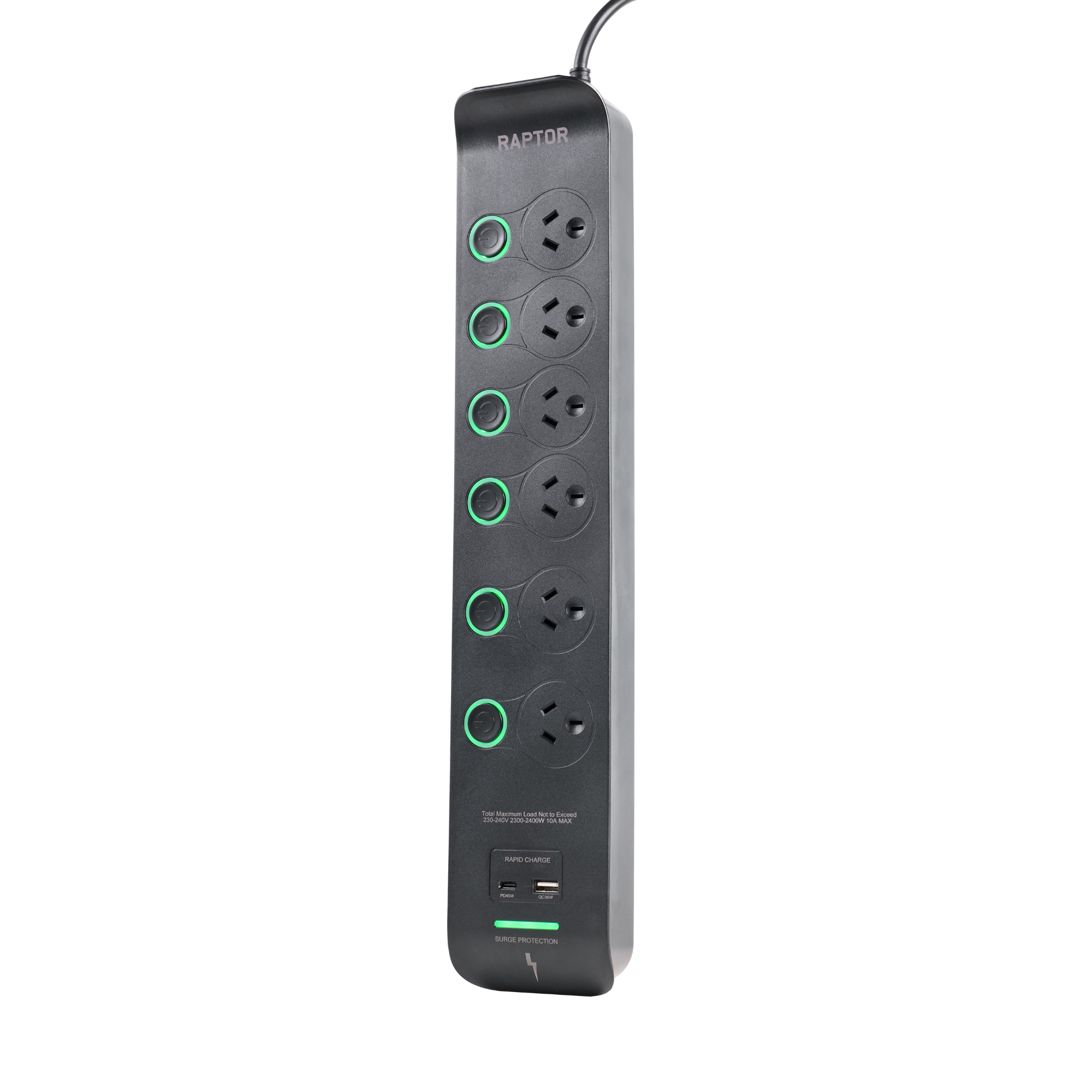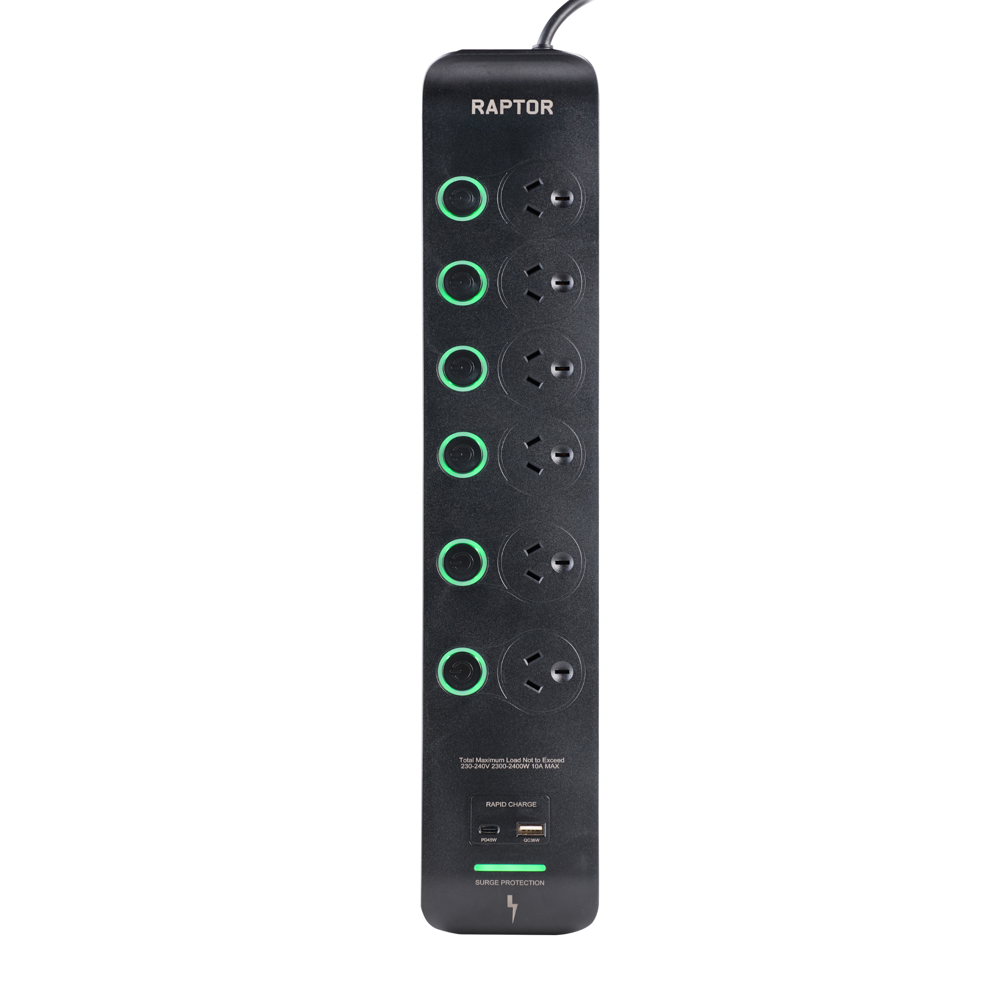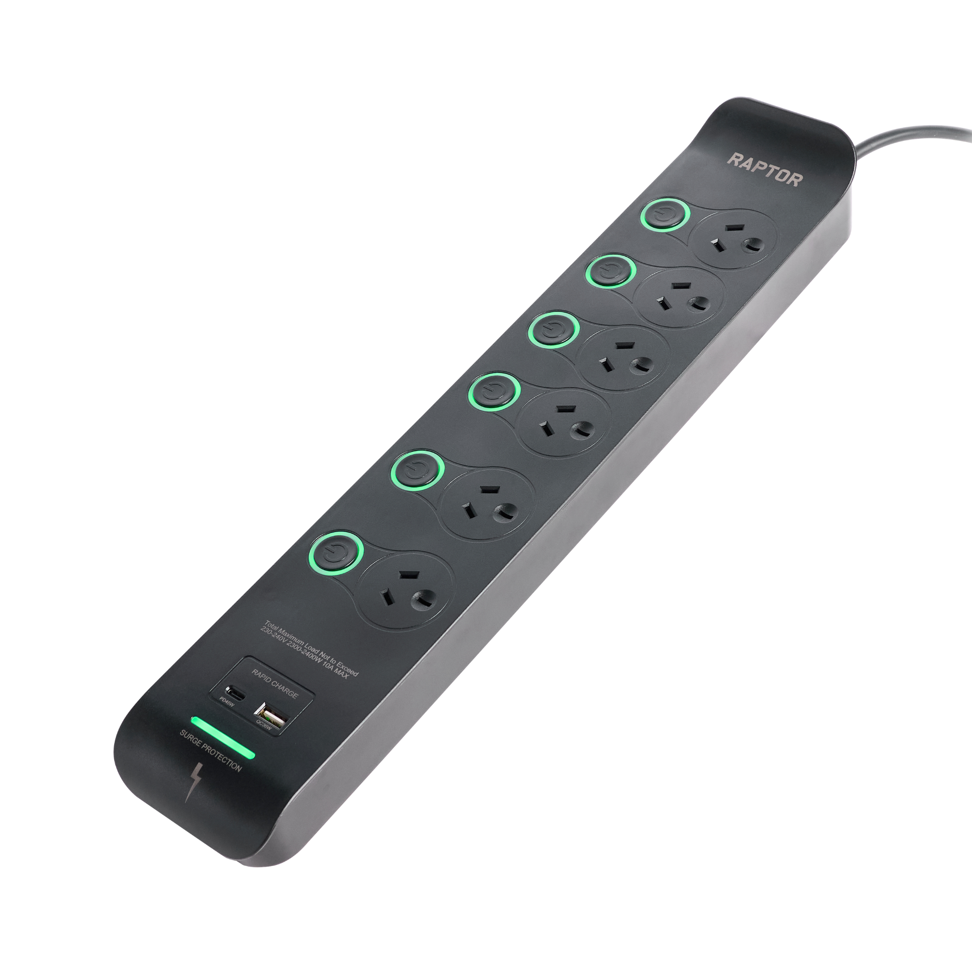 Engineered for high-performance electronics, the Jackson Raptor range delivers elite-level power and protection for modern devices. Designed in Australia, every product features rapid USB-C or USB-A charging with patented high-speed surge protectionthat clamps down on spikes in less than 20 nanoseconds. From compact dual-port leads to multi-outlet powerboards, Raptor provides robust, reliable power for gaming setups, entertainment systems, computers and high-demand tech environments. Durable, stylish and packed with intelligent safety features, Raptor keeps your devices running efficiently while safeguarding your valuable electronics.