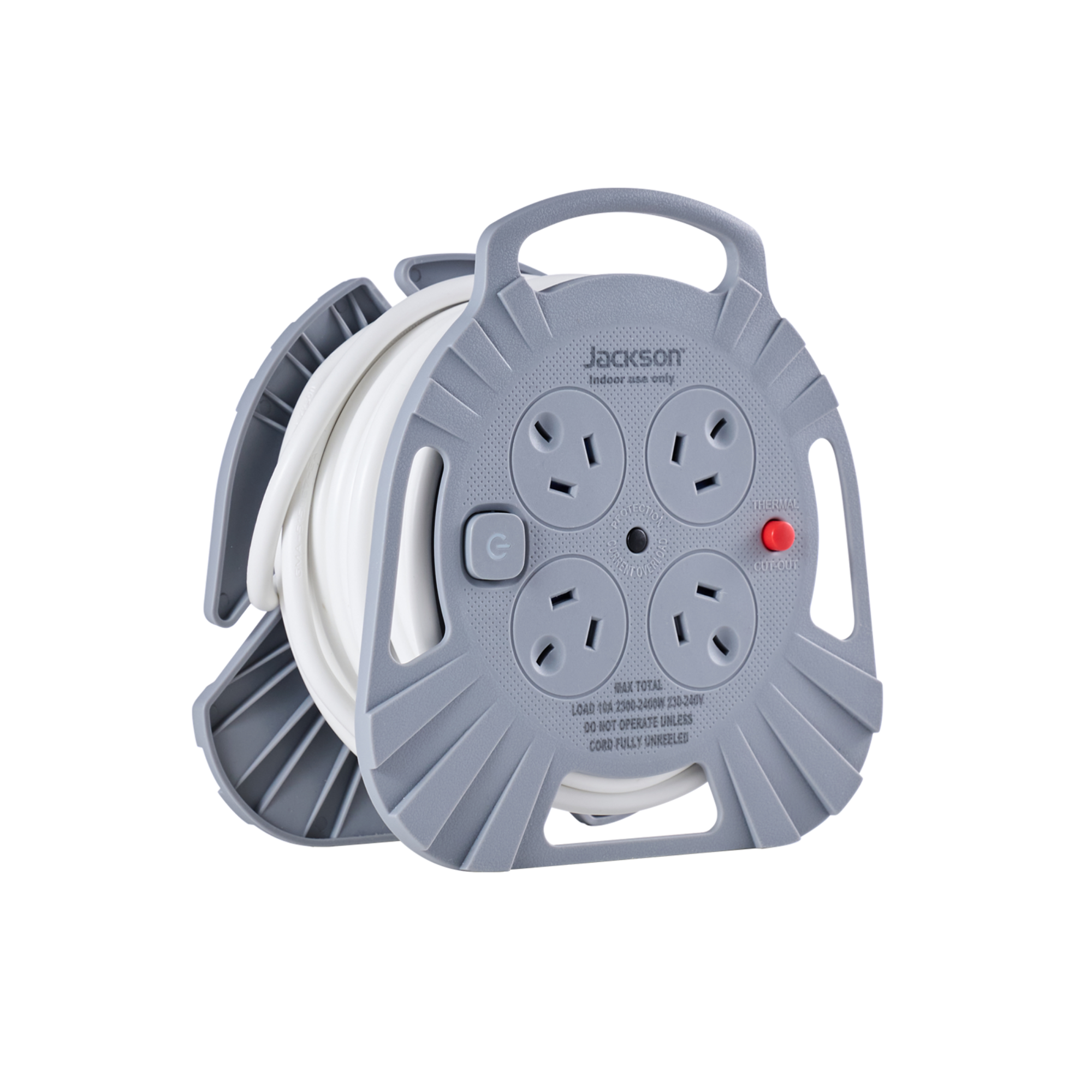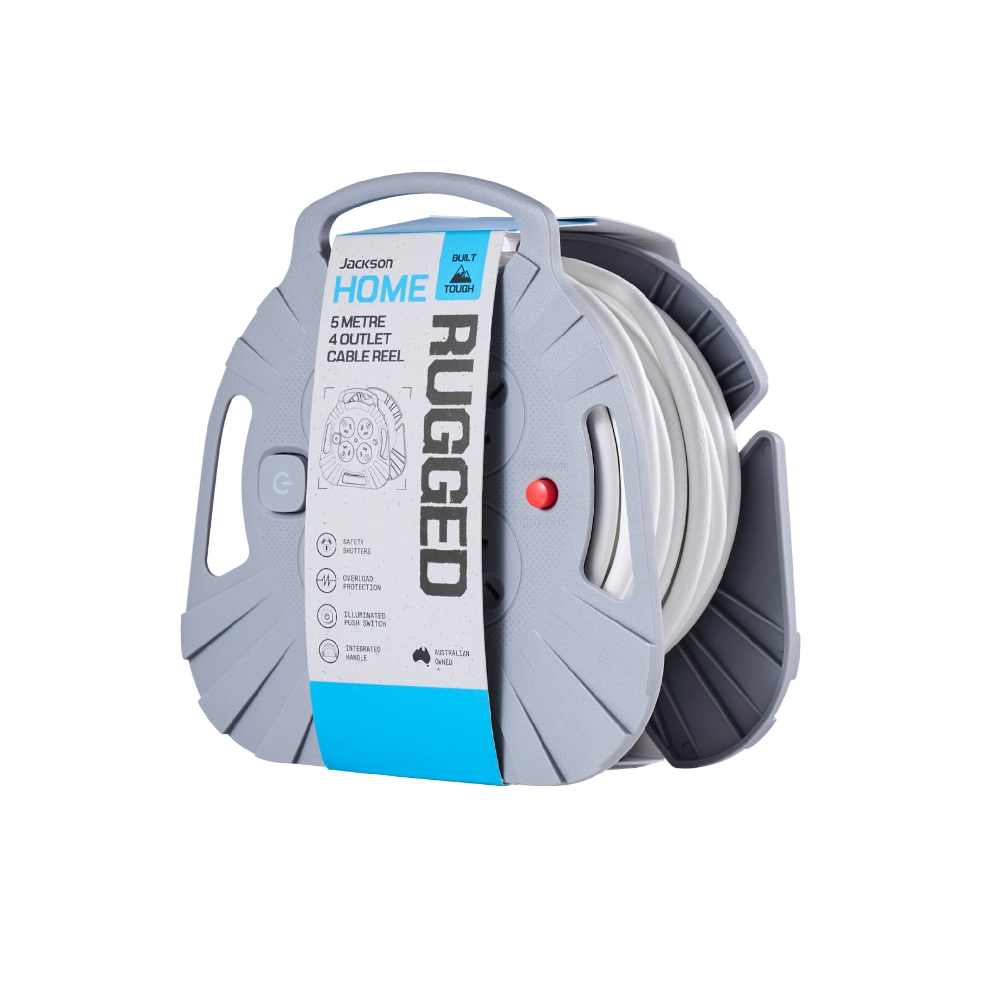 The Jackson Rugged RUGR45GY cable reel is built for portability and reliability, providing power precisely where you need it. Featuring 4 safety-shuttered outlets and a generous 5-metre cord length, this reel handles multiple devices simultaneously.